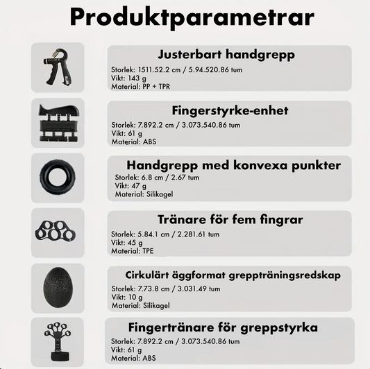 Tillfälligt slutsåldGreppstyrkeset – komplett träning för händer, fingrar och underarmar (6 delar)