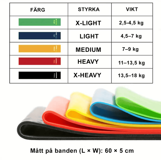 Träningsband 5-pack – Hemmagym, Fitness, Yoga & Pilates