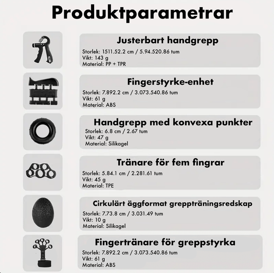 Redskapen är lätta att använda och gör det möjligt att träna hemma med full kontroll. Oavsett om ditt mål är att öka styrkan, förbättra greppet eller främja återhämtning finns här något som passar dina behov.