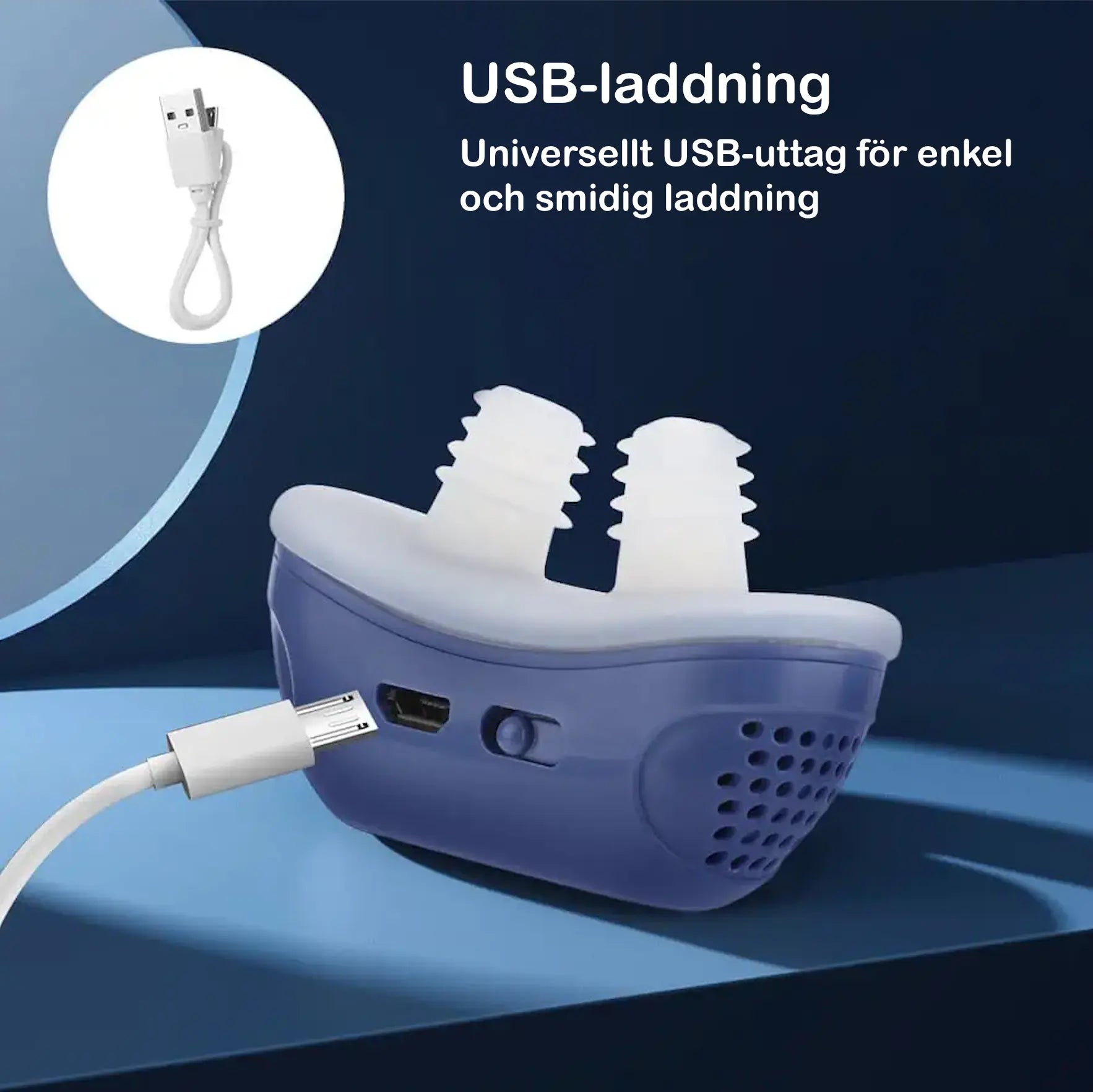 Från vårt svenska lager till din dörr på 1-2 dagar – inga långväga leveranser!Elektrisk anti-snarkningsenhet som förbättrar andningen under sömn och hjälper till att minska snarkning på ett skonsamt sätt.