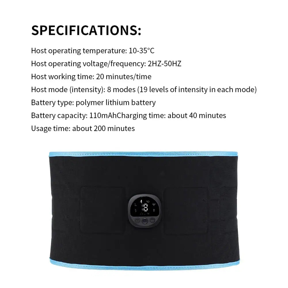 Från vårt svenska lager till din dörr på 1-2 dagar – inga långväga leveranser!EMS magbälte som stimulerar magmusklerna med elektriska impulser för träning och muskelaktivering hemma.