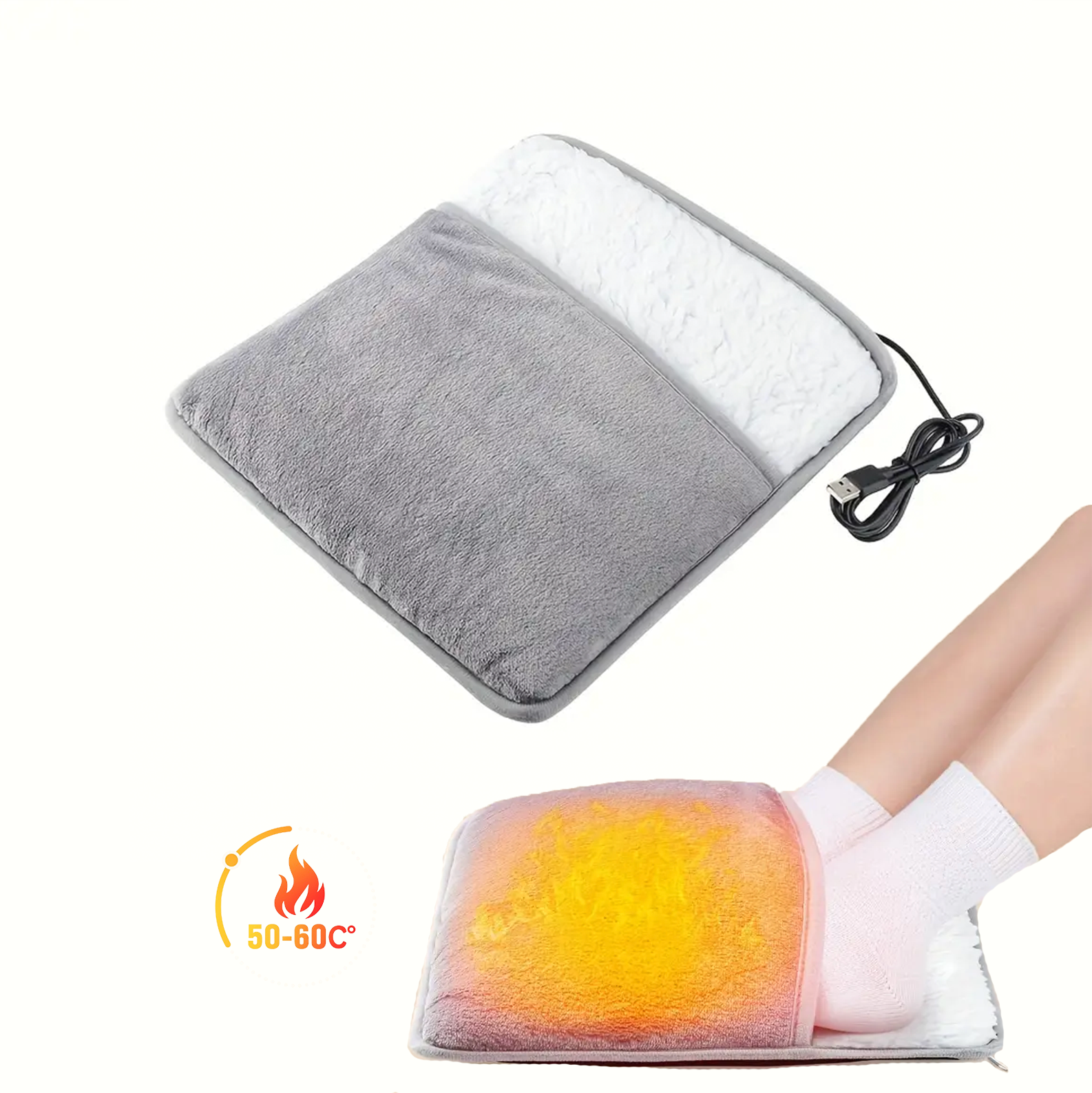 En mjuk och skön fotvärmare som ger jämn värme vid kalla fötter. USB-driven, säker och enkel att använda hemma eller på jobbet – perfekt för vinter och kyliga golv.