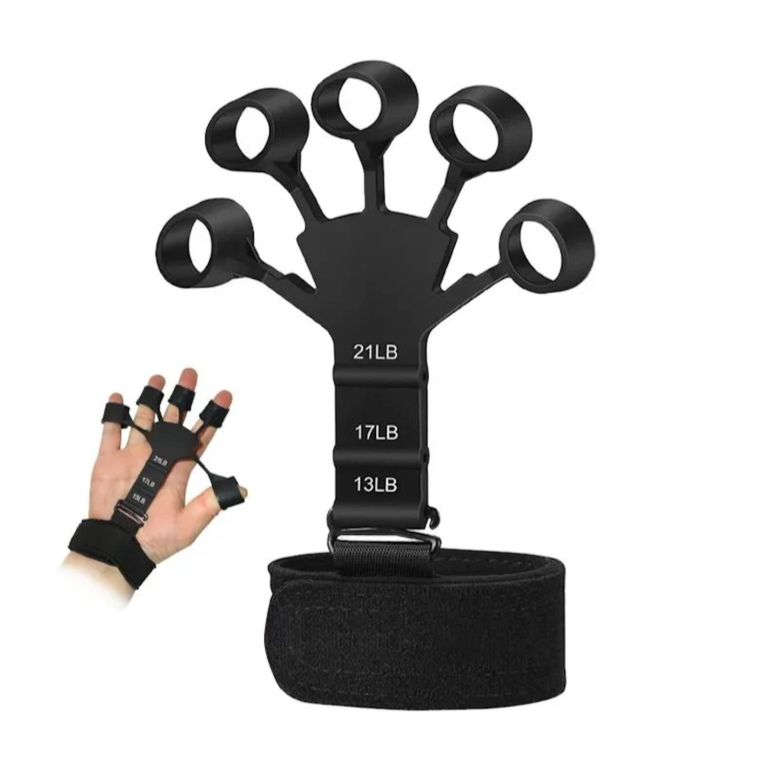Finger- och handstyrketränare med justerbart motstånd för att stärka grepp, bygga fingerstyrka och stödja rehabilitering av händer och handleder. Passar både träning och återhämtning.