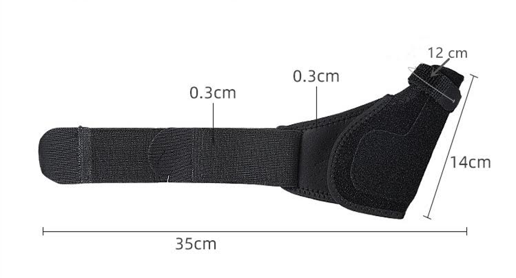Handledsstöd med tumstöd som ger både handleden och tummen stabilitet, minskar risken för överbelastning och lindrar smärta genom värme. Det är utformat för att passa både vänster och höger hand, med justerbara remmar för optimal passform.