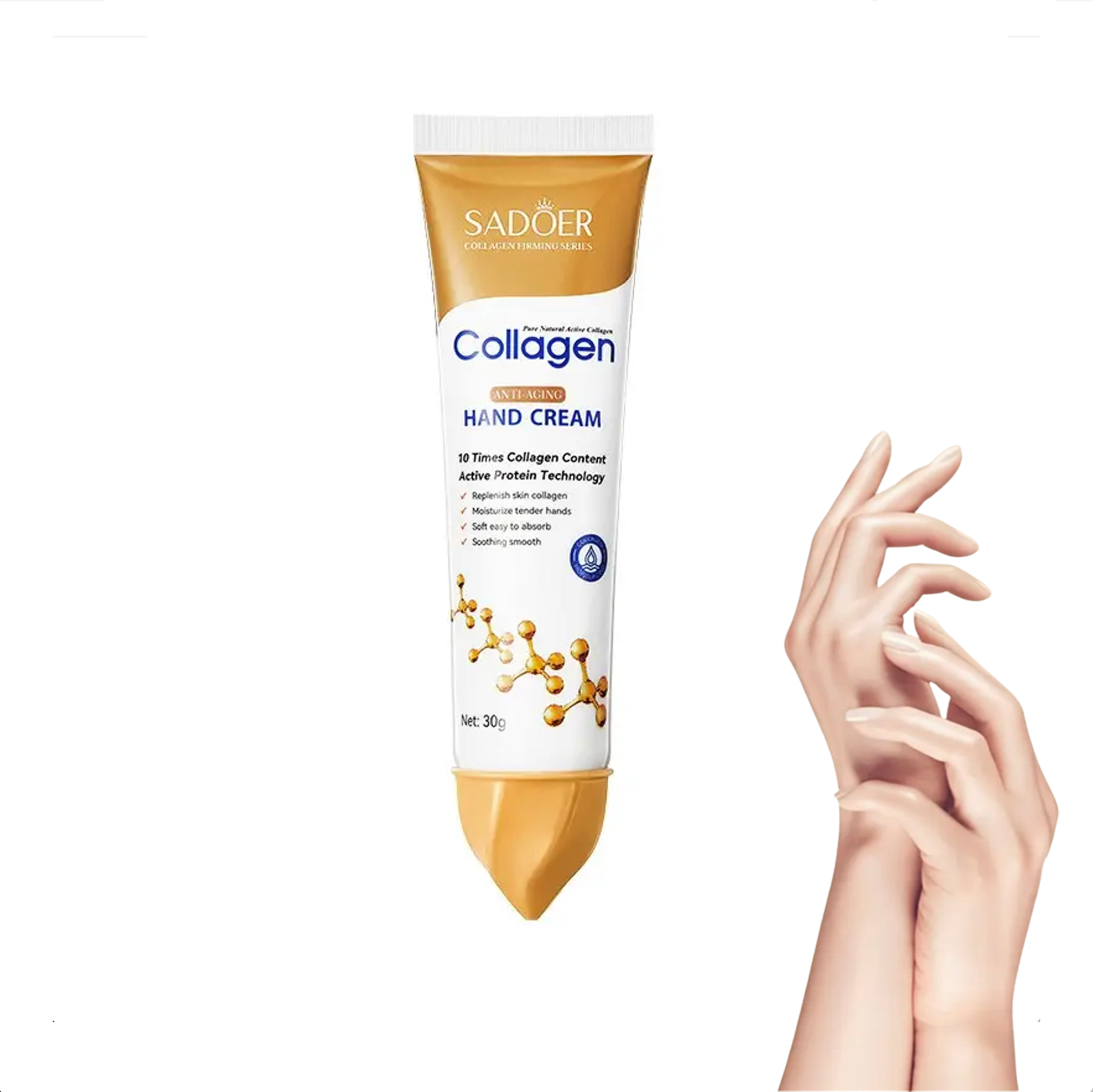 Kollagen bidrar till att stärka hudens skyddande barriär och hjälper huden att behålla fukt, vilket är särskilt uppskattat vid torra, nariga eller ansträngda händer. Regelbunden användning kan ge en jämnare och mer välvårdad känsla i huden.