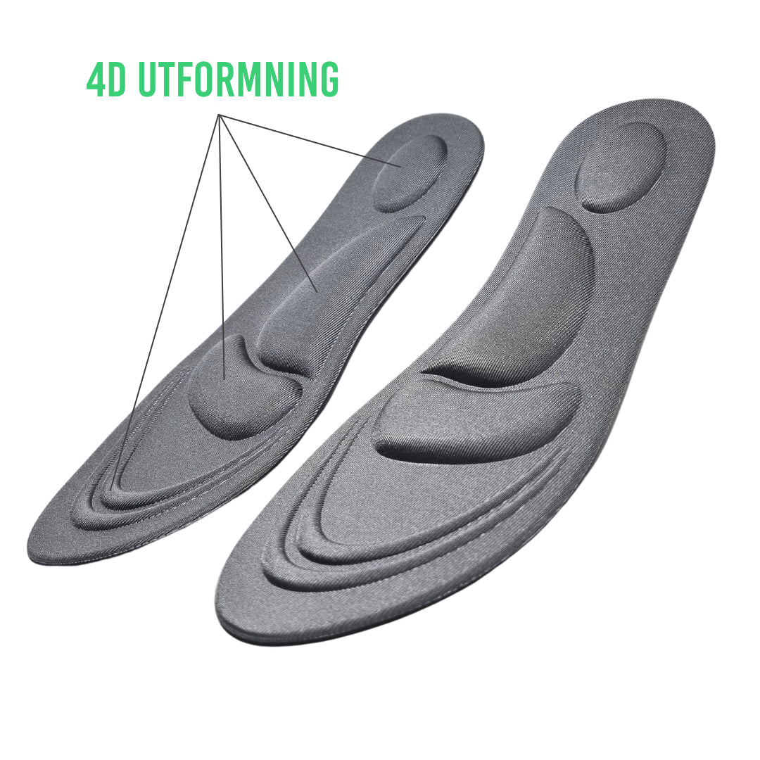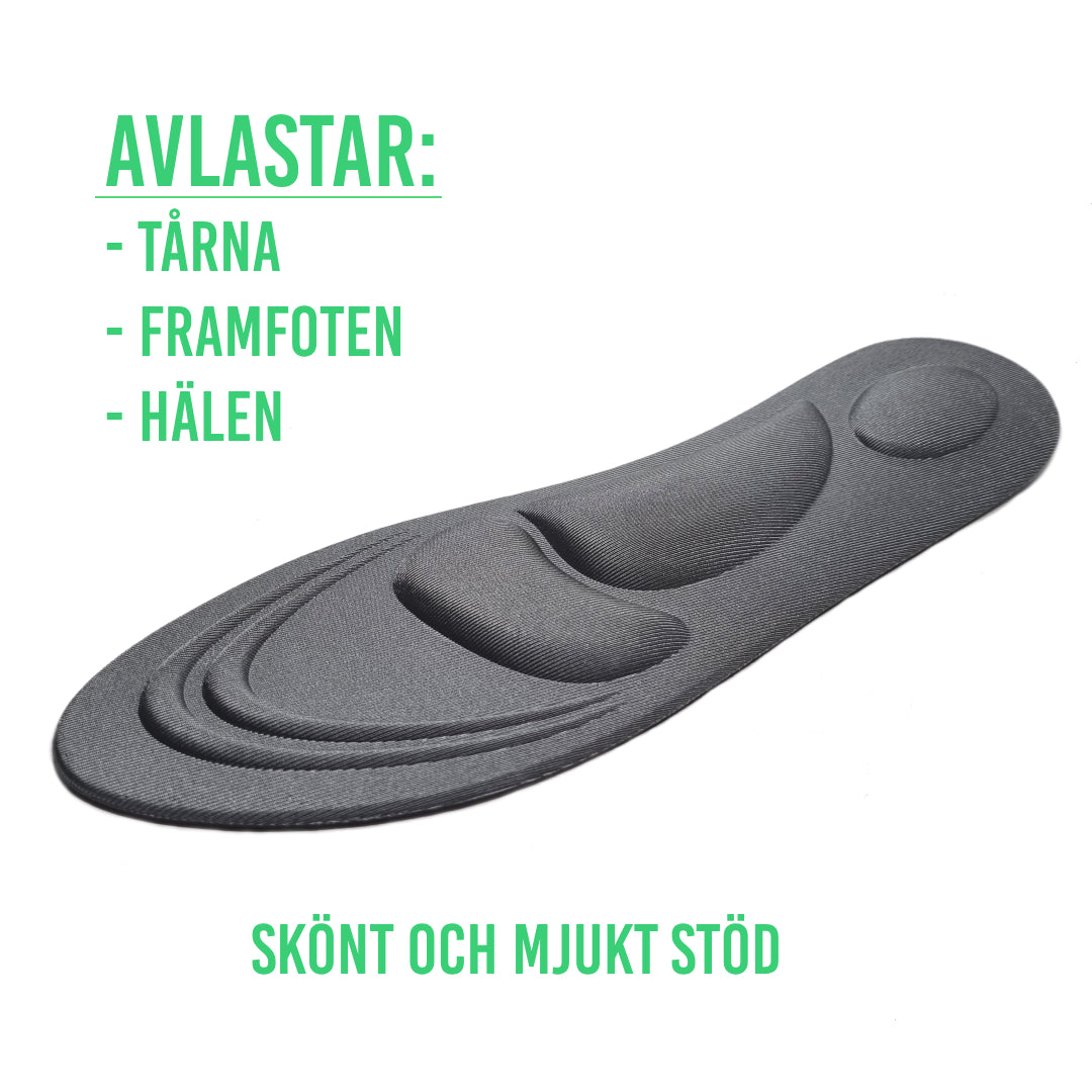 Genom användning av dessa stötdämpande inlägg till skor kommer du att få uppleva den behagliga känslan av att gå på moln. Dina tår, främre fotparti, mellanfot och häl kommer att njuta av en mjuk och stötdämpande kudde, vilket ger avlastning och komfort för hela foten